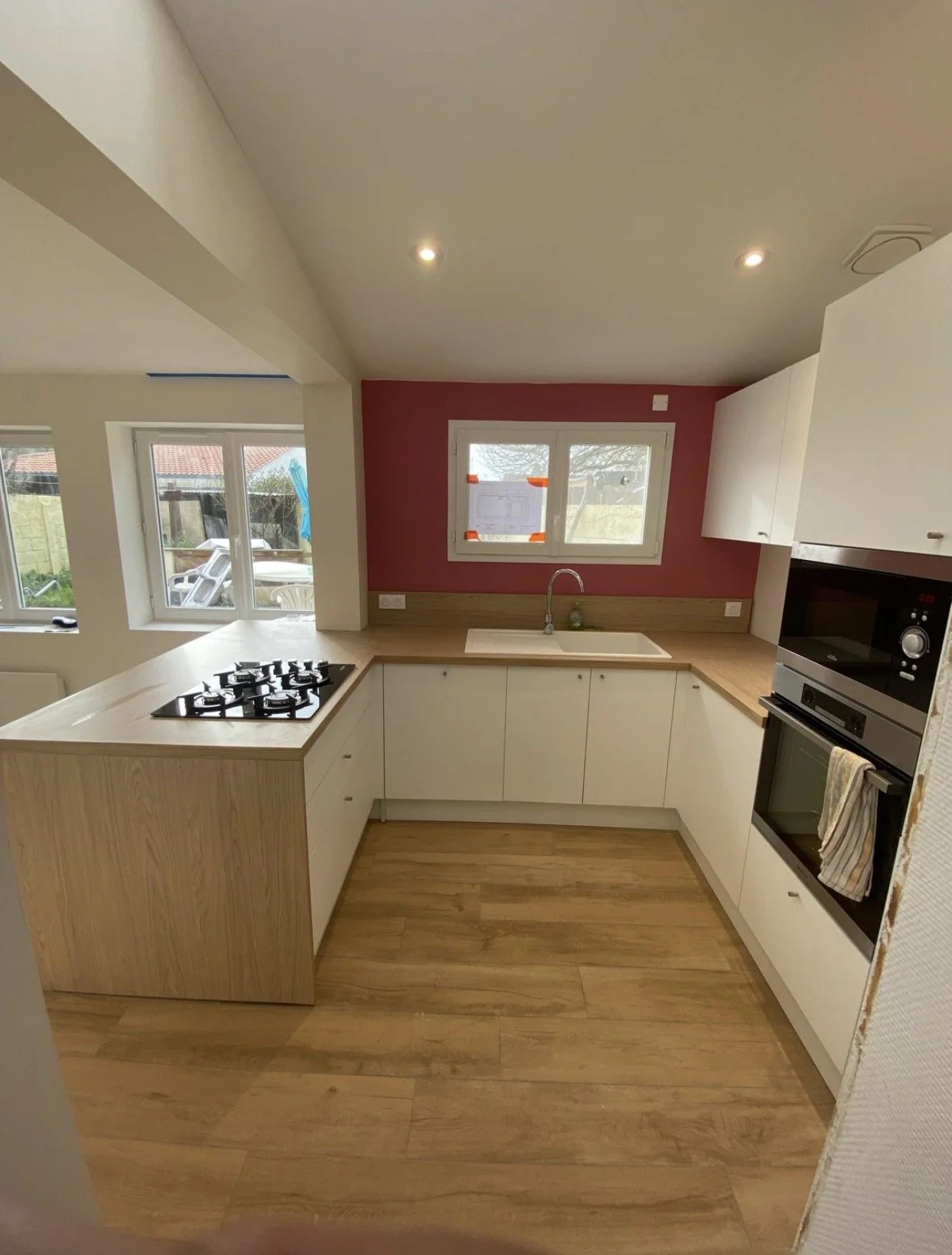 Grâce à une implantation optimisée, la circulation est fluide, les zones de préparation et de rangement sont bien pensées, et chaque élément trouve naturellement sa place..