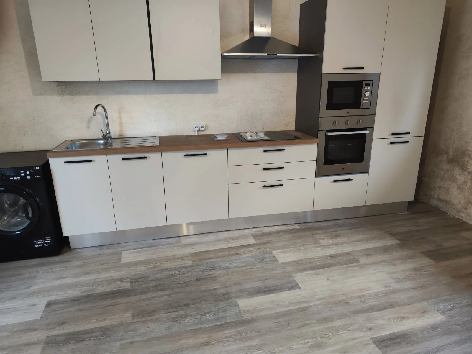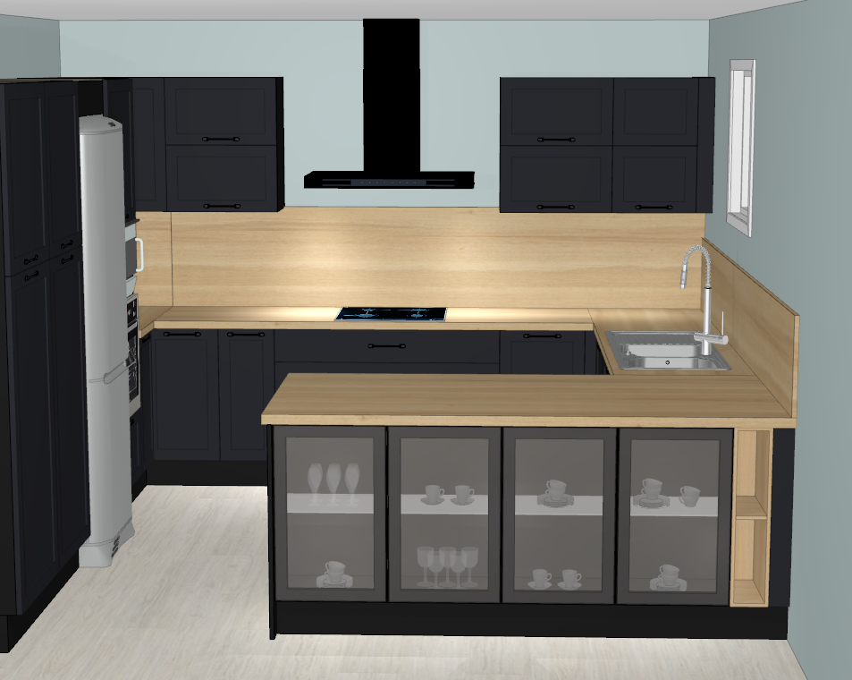 – Une hotte et une crédence stratifiée parfaitement intégrées