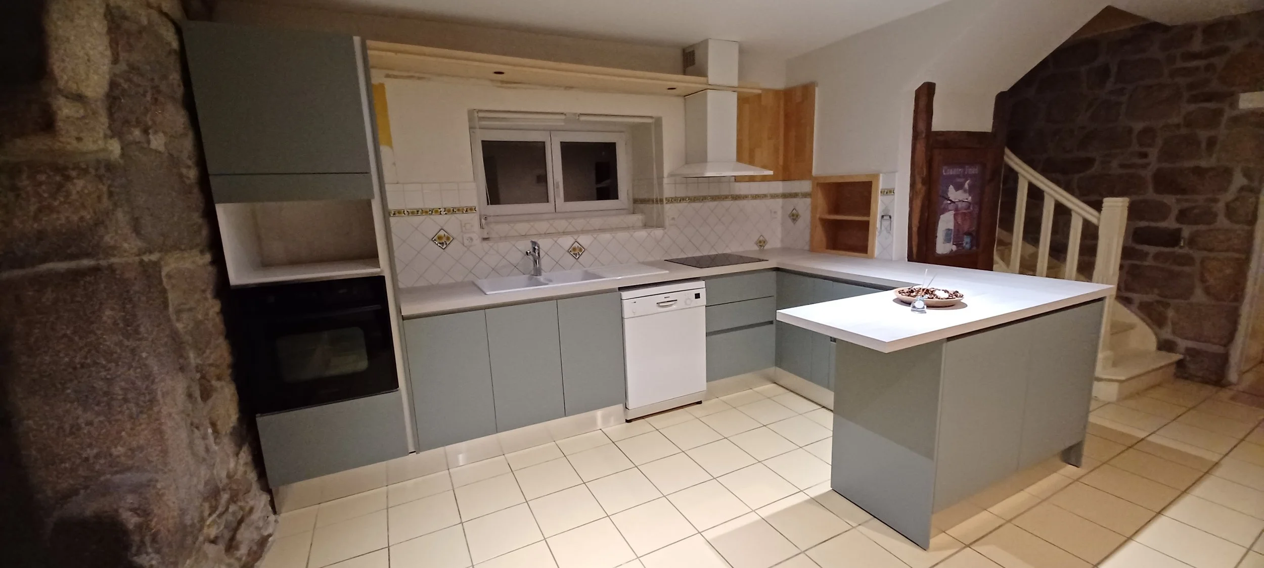 Une cuisine fonctionnelle et lumineuse, organisée autour d’un îlot central.