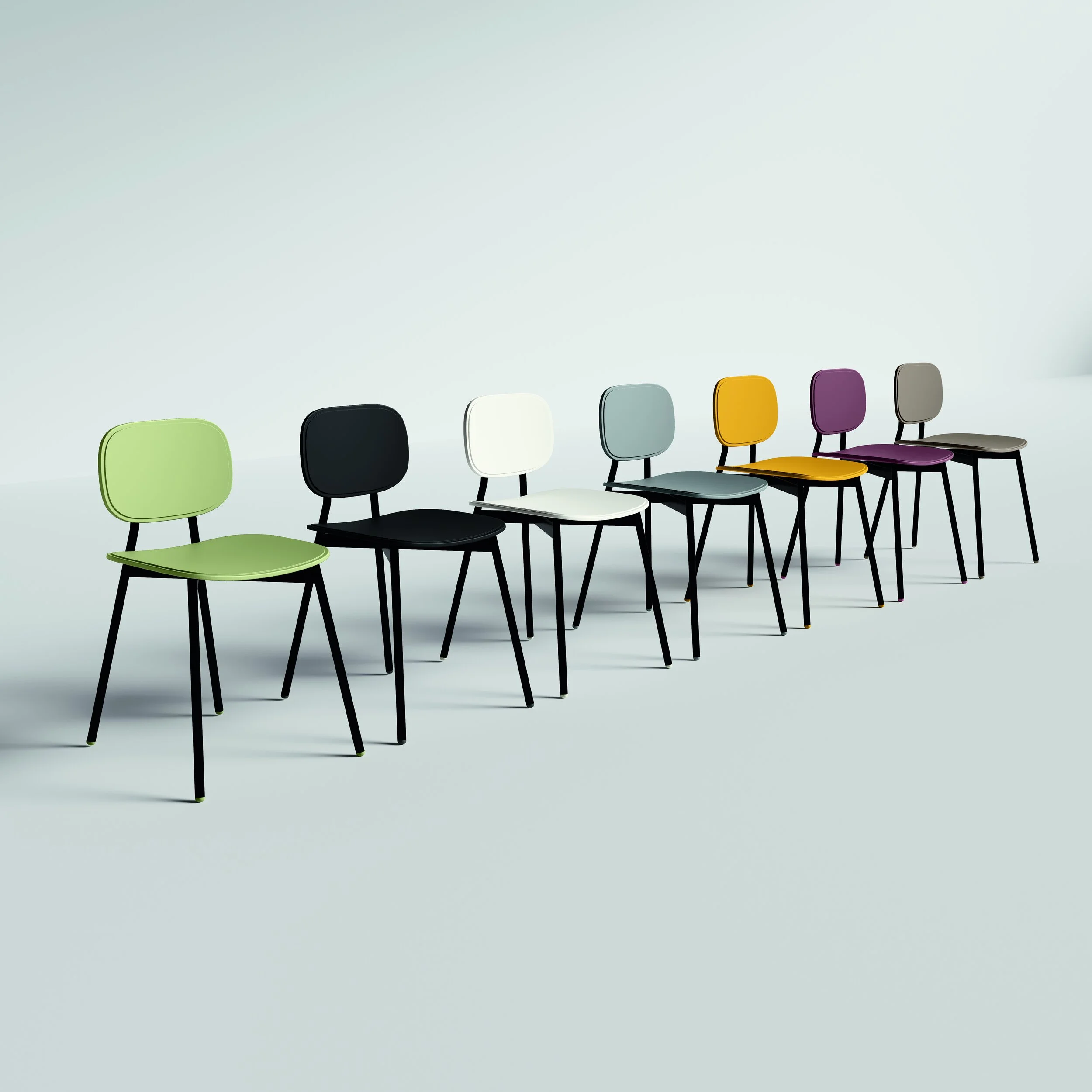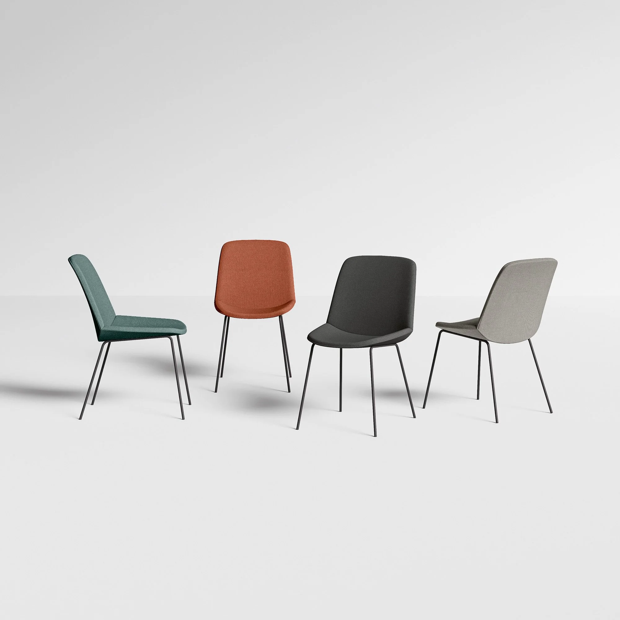 Chaise avec assise en tissu et un piètement en métal noir. Disponible en 4 coloris différents. Séduisante par son design épuré et sa conception ergonomique. Son dossier incurvé assure un soutien, faisant de cette chaise un choix idéal pour les espaces contemporains.